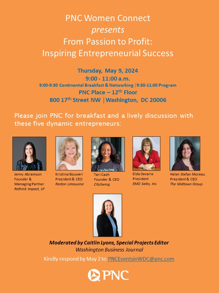 PNC Event May 9 from 9 - 11AM: From Passion to Profit